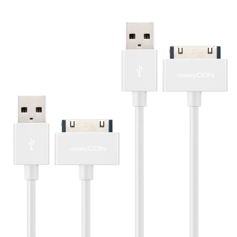 2er SET deleyCON 1x 1m + 1x 2m 30pin iPhone zu USB Kabel (2 Stück) [Weiß]