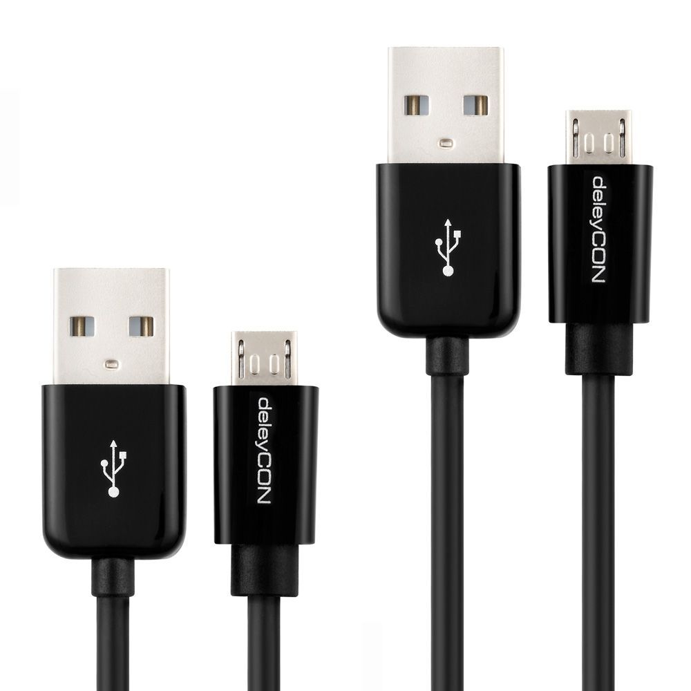 2er SET deleyCON 1x 1m + 1x 2m microUSB zu USB Kabel (2 Stück) [Schwarz]
