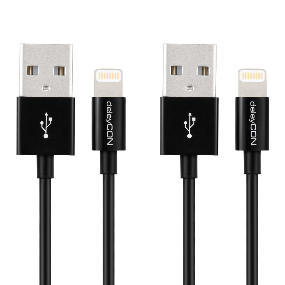/ 2er SET deleyCON 2x 1m Lightning zu USB Kabel (2 Stück) [Schwarz] Sync/Ladekabel