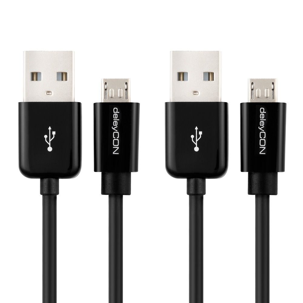 2er SET deleyCON 2x 1m microUSB zu USB Kabel (2 Stück) [Schwarz] Sync/Ladekabel