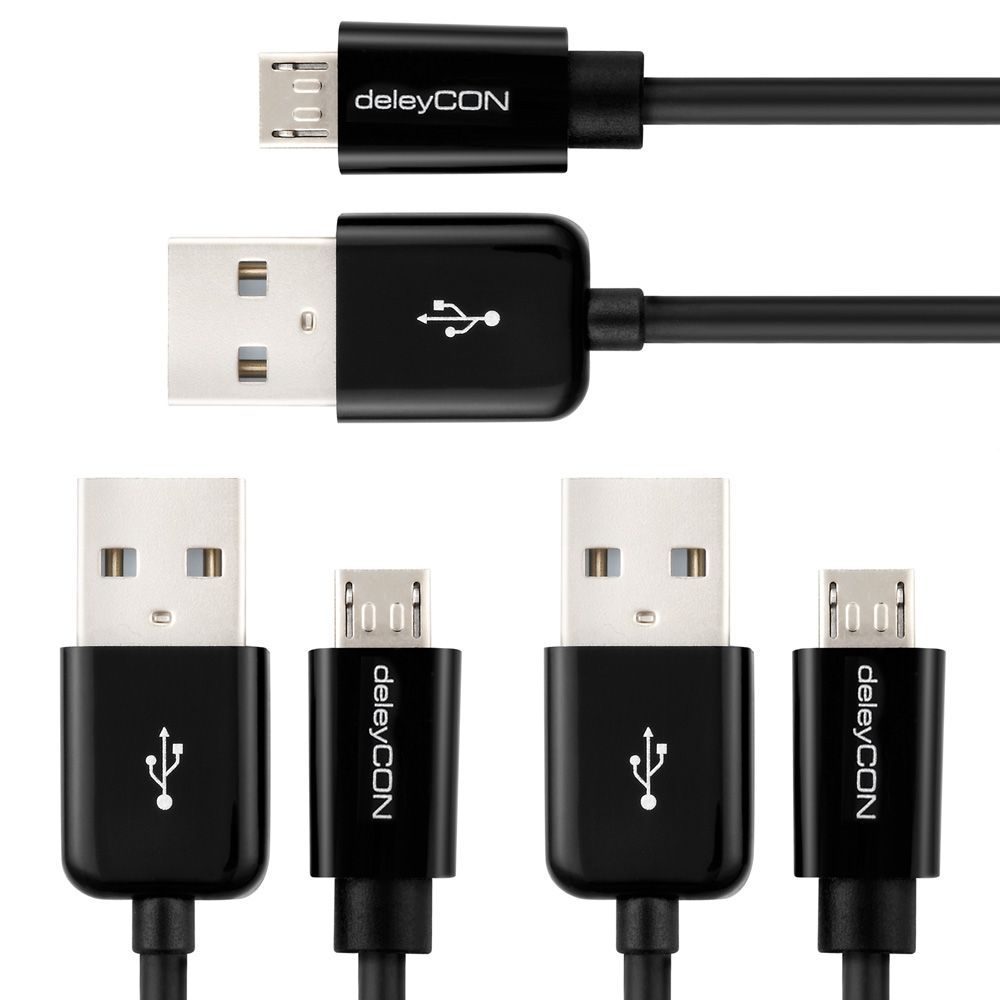 / 3er SET deleyCON 3x 1m microUSB zu USB Kabel (3 Stück) [Schwarz] Sync/Ladekabel