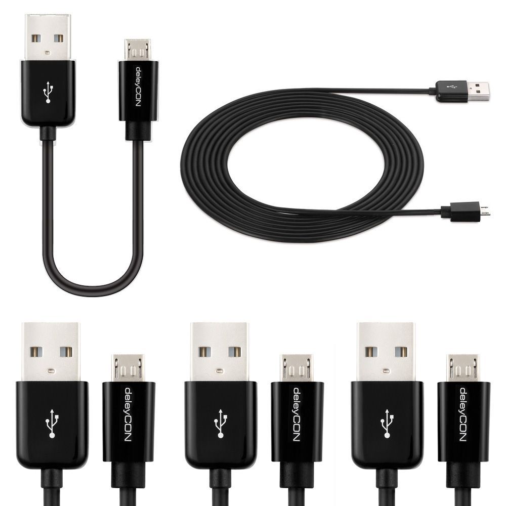 / 5er SET deleyCON 1x 0,5m + 3x 1m + 1x 2m microUSB zu USB Kabel (5Stück) [Schwarz
