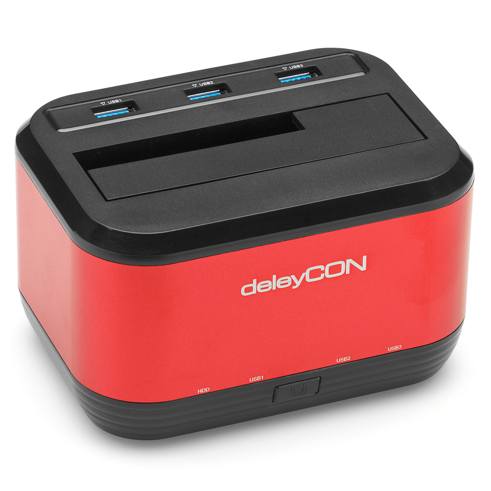 / deleyCON 2,5/3,5 USB 3.0 Dockingstation + USB 3.0 Hub – Rot [UASP und SATA3]