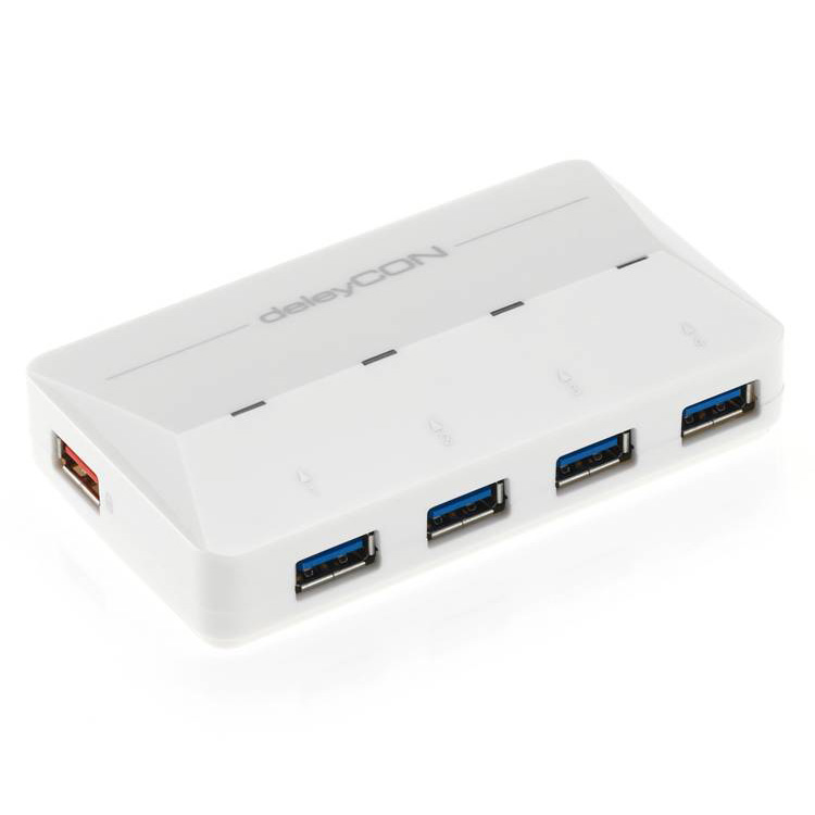/ deleyCON 4 Port USB 3.0 Hub – Aktiv mit Netzteil + 1 EXTRA Schnellladeport 2,4A