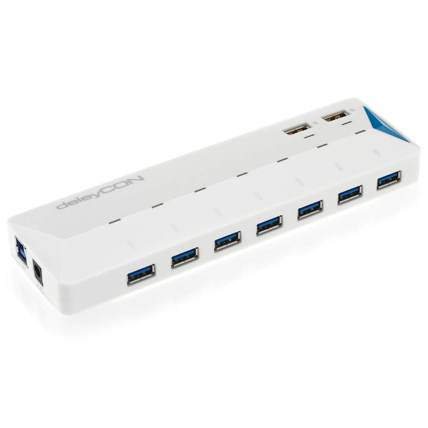 deleyCON 7 Port USB 3.0 Hub – Aktiv mit Netzteil + 2 EXTRA Schnellladeports 2,4A