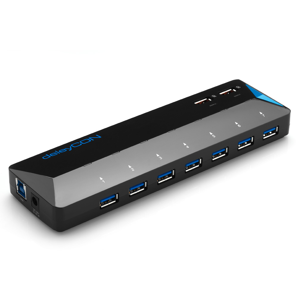 deleyCON 7 Port USB 3.0 Hub – Aktiv mit Netzteil + 2 EXTRA Schnellladeports 2,4A