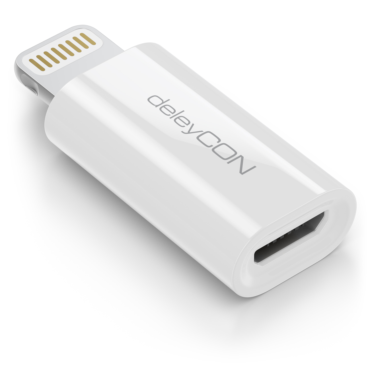 / deleyCON micro USB zu Lightning Adapter Buchse/Stecker Weiß Apple zertifiziert