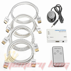 / deleyCON Set – 3 Port HDMI Switch + 4 Stück HDMI Kabel – Weiß + Fernbedienung