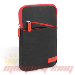 deleyCON Tablet Tasche bis 7″ (17,8cm) aus Leinen mit Zubehörfach – Schwarz/Rot