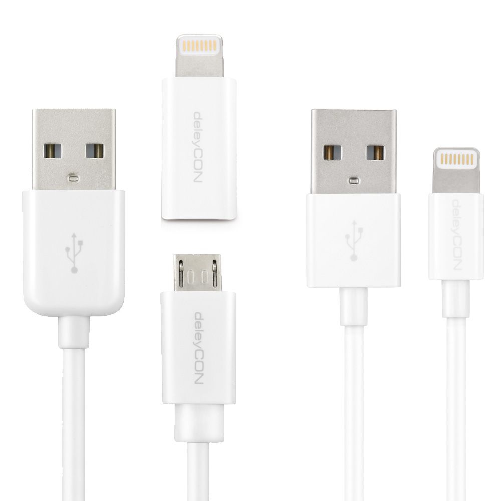 / SET deleyCON 1m Lightning Kabel + 1m microUSB Kabel + Lightning Adapter [Weiß]