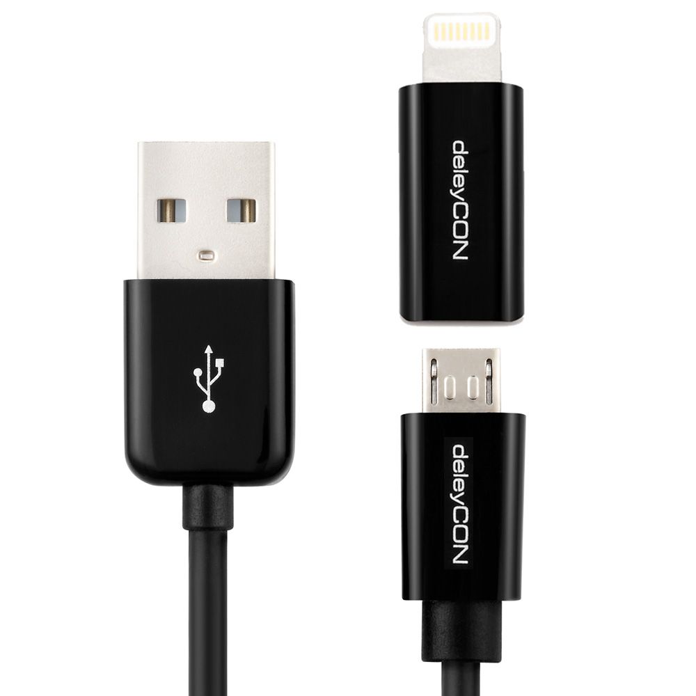 / SET deleyCON 1m microUSB Kabel + Lightning Adapter [Schwarz] – Sync / Ladekabel