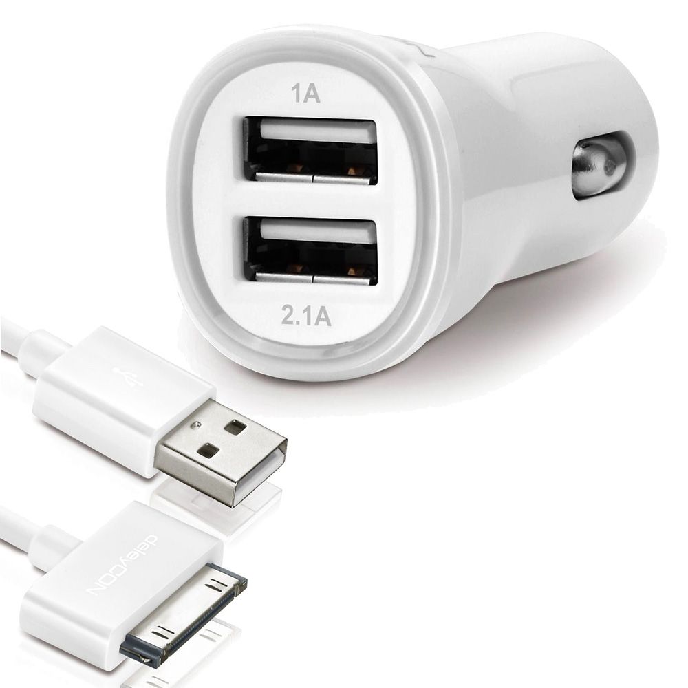 / SET deleyCON DUAL KFZ Ladegerät + 1m 30pin iPhone Kabel [Weiß]