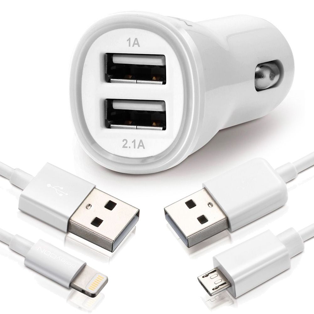 SET deleyCON DUAL KFZ Ladegerät + 1m Lightning Kabel + 1m microUSB Kabel [Weiß]