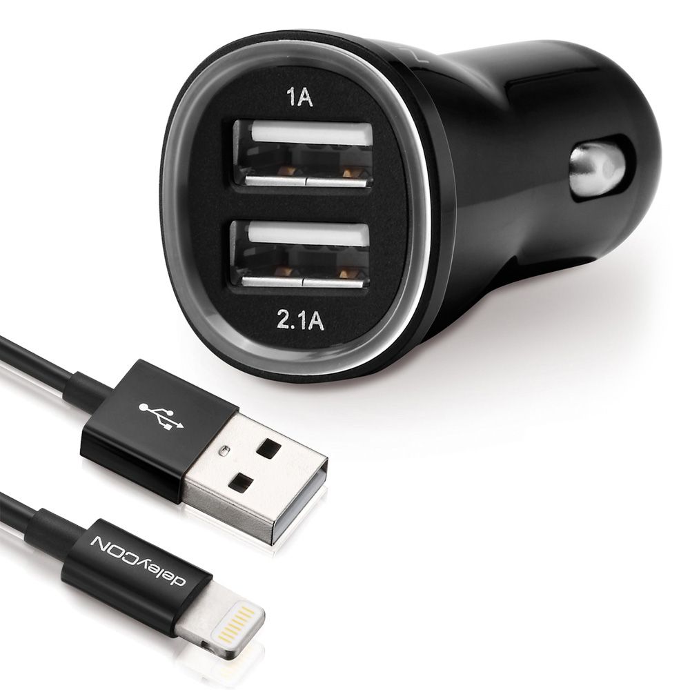 SET deleyCON DUAL KFZ Ladegerät + 1m Lightning Kabel [Schwarz]