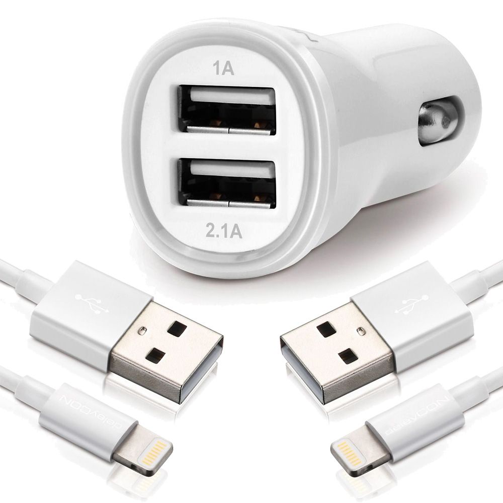 SET deleyCON DUAL KFZ Ladegerät + 2x 1m Lightning Kabel (2 Stück) [Weiß]